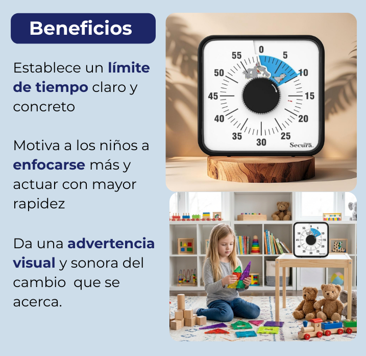 • Ideal para niños que no conocen el reloj ni entienden al manejo del tiempo